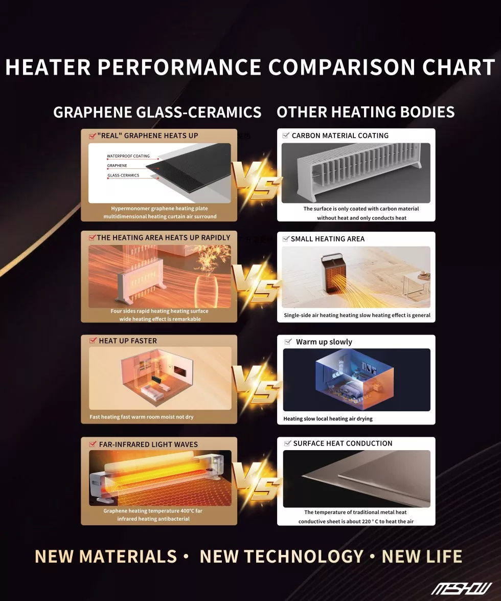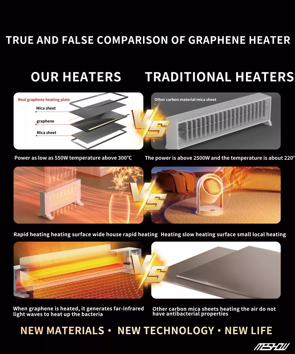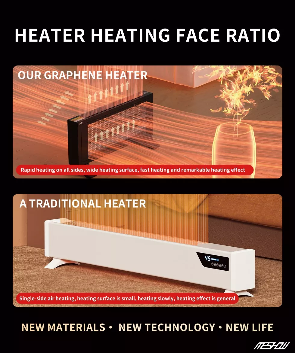 Meshow est fortis elit, quod feliciter developed a 1100w alba graphene baseboard electrica calefacientis. Graphene Heater praebet intelligentes, calidum et comfortable domi ambitus pro domesticis et aliena users, ducens novus trend de calefactio domi et foris?